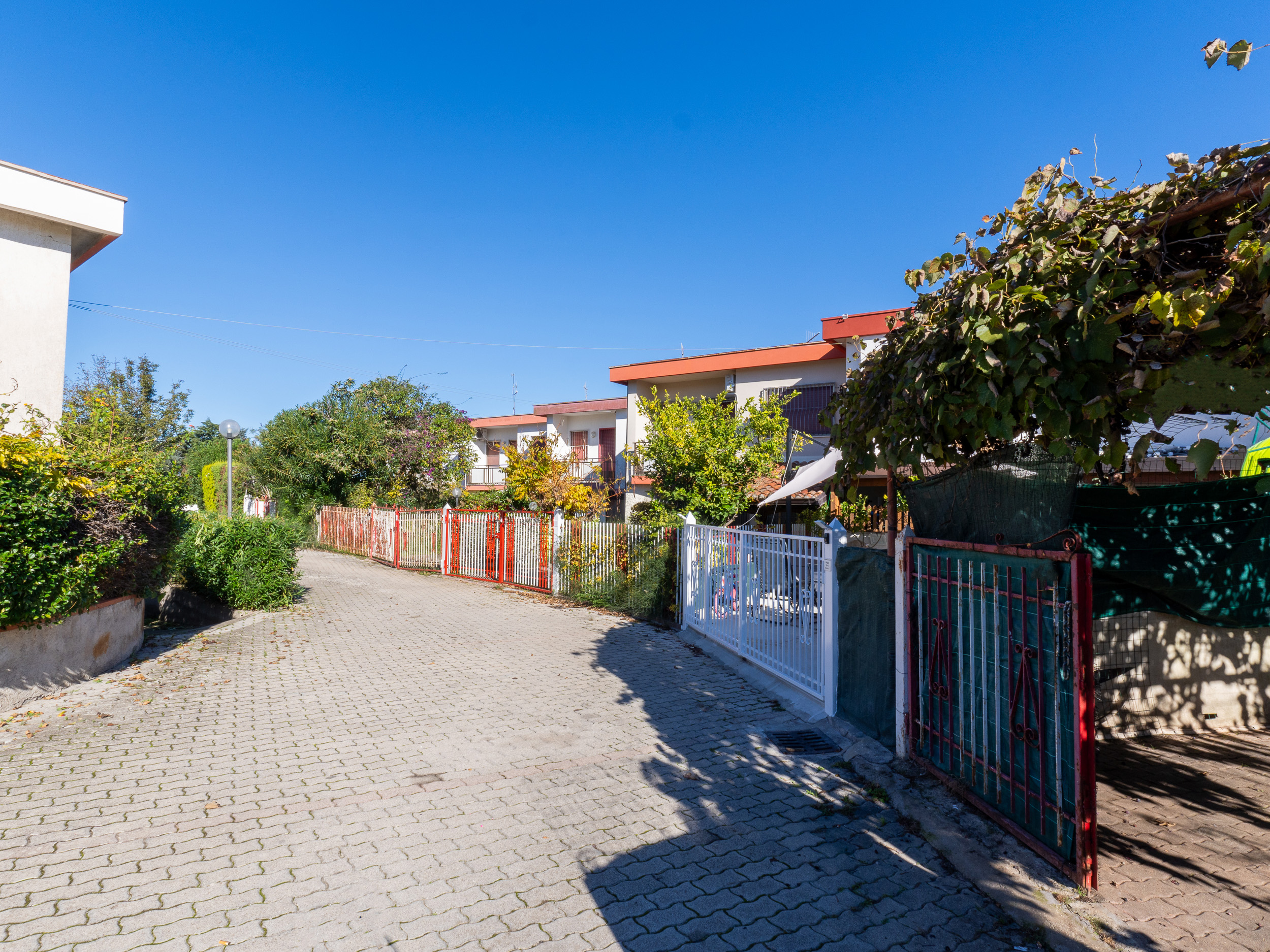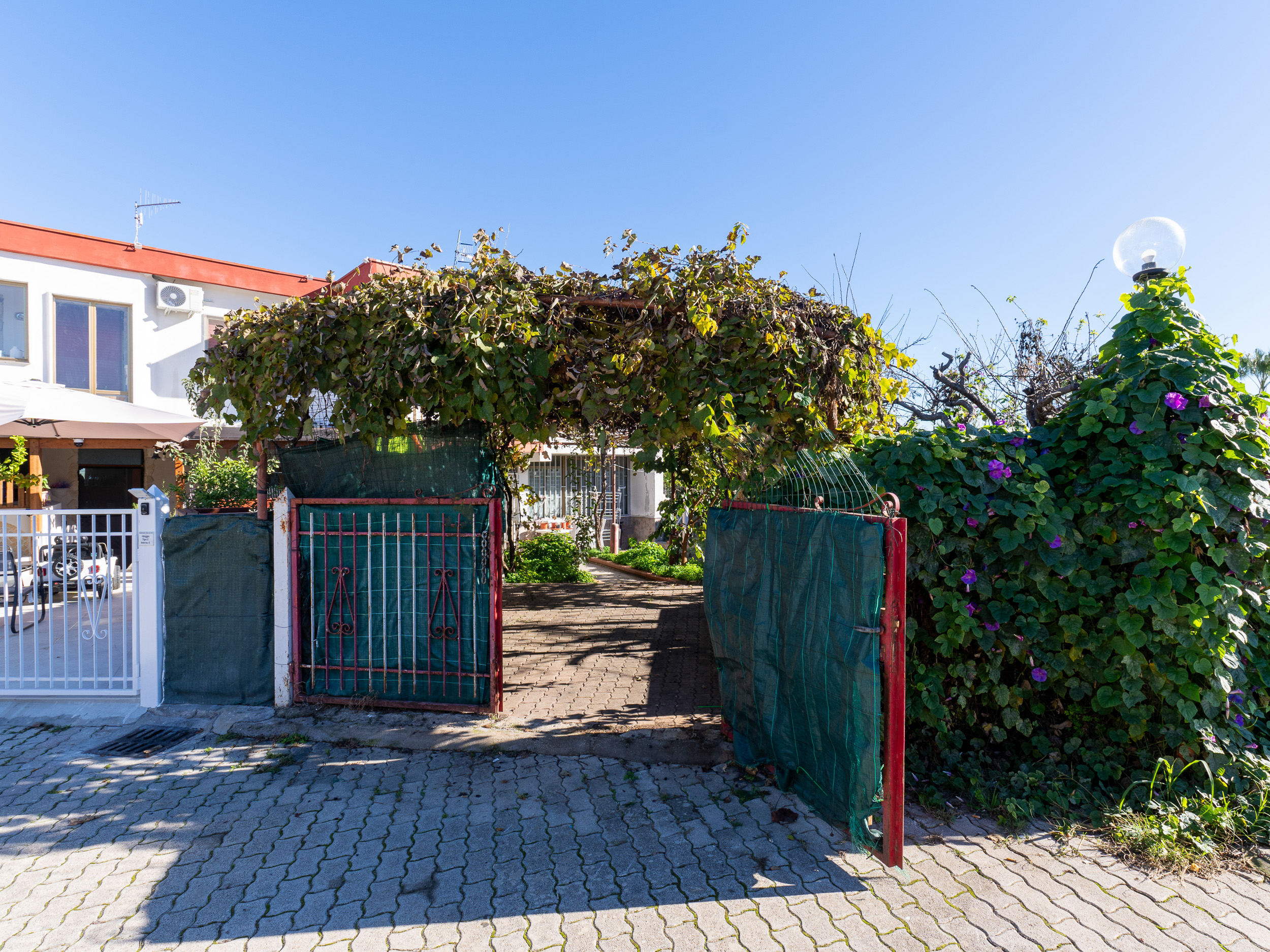 Appena si arriva davanti alla villetta, il primo gesto è aprire il cancello della corte privata: uno spazio che diventa subito parte della quotidianità.