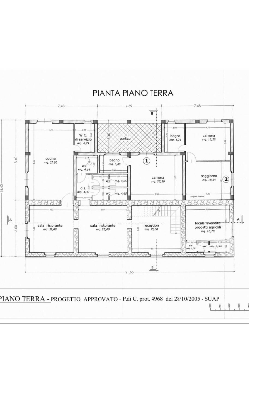 Fabbricato: oltre 400 mq su 2 livelli · 6 camere · 7 bagni · 2 sale ristorante · reception Particella artigianale D1: 6.000 mq Accesso: strada asfaltata · ingresso diretto SS18